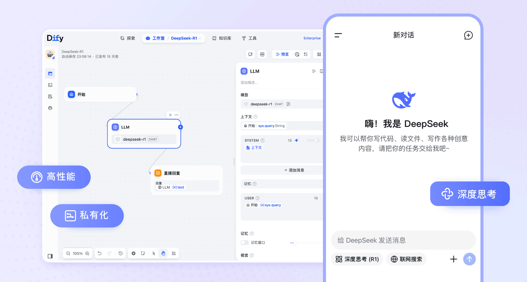 客户是一家国有科研事业单位,单位积极响应国家号召开展"AI+"专项行动,通过部署私有化Dify并接入DeepSeek构建应用创新平台。方案整体架构以Dify为中枢,深度融合DeepSeek的算法能力与vLLM的推理优化,兼顾数据安全、计算效率与功能扩展性。为单位各部门的私有化、高性能的AI应用创新提供了基础能力。